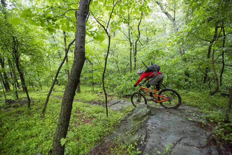 “Dropping into the green on the Emmitsburg advanced trail.”